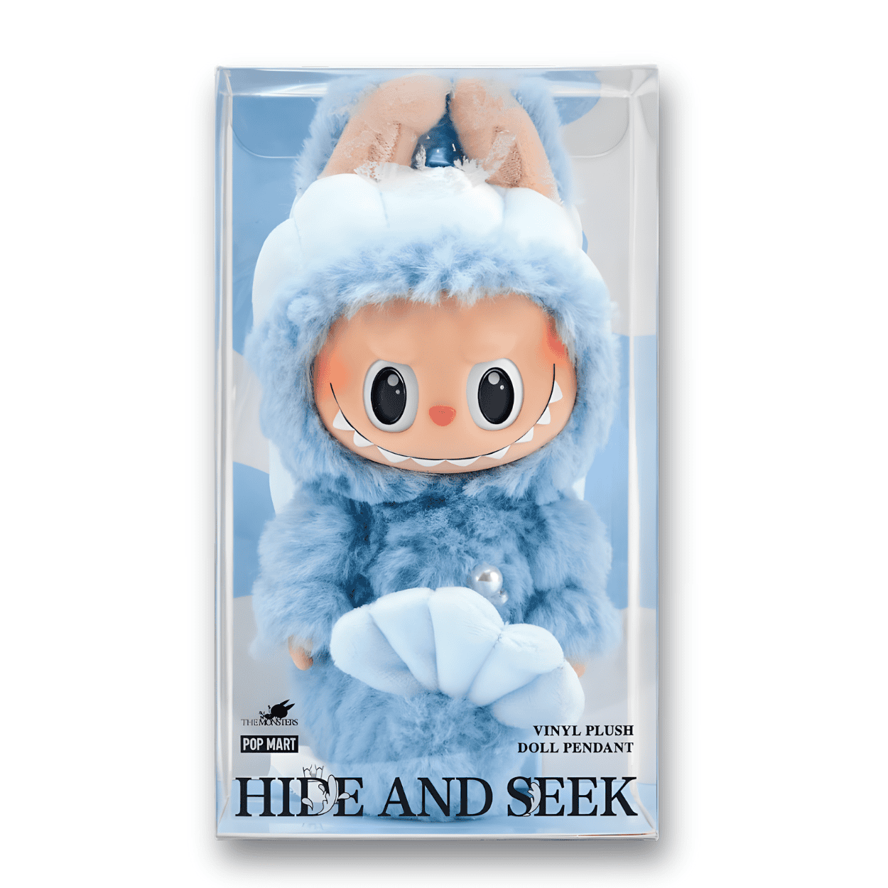 The Labubu Hide and Seek Keychain brings an enchanting twist to the Labubu lineup. Wrapped in a soft blue plush suit and framed by oversized flower petals, this pendant blends sweetness and subtle fantasy. A small pearl accent adds to the charm, making it a refined piece for collectors who love soft aesthetics.