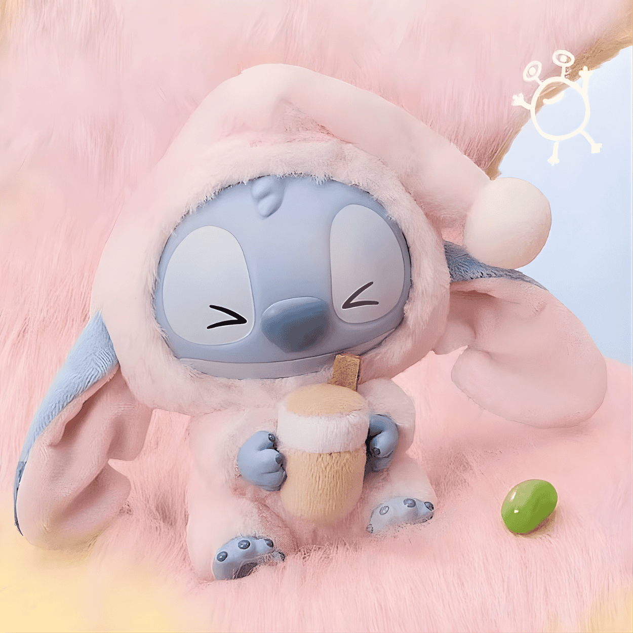 Discover Stitch in his coziest form! Dressed in a comfy pajama set, each character is holding a delicious-looking snack. This must-have series features 6 delightful designs to collect, and every plush comes with its own official character collector’s card:
