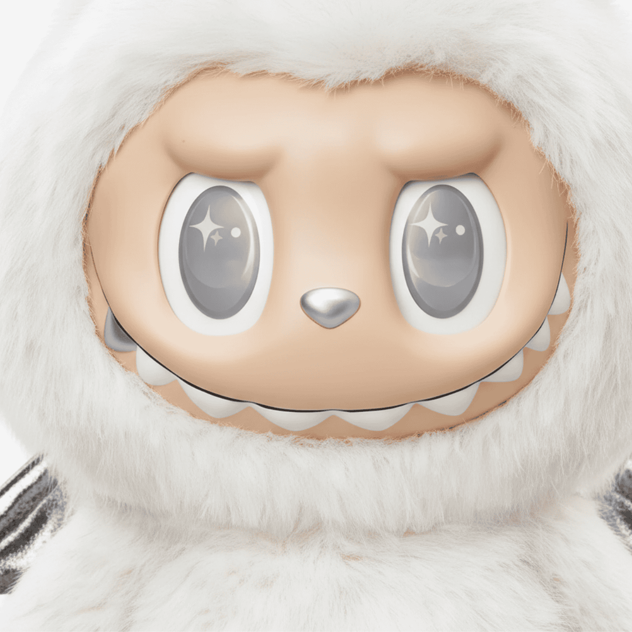 The Labubu Zimono Angel Vinyl Plush is a rare and delicate treasure from artist Kasing Lung. With its fluffy white fur and expressive vinyl face, this 100% authentic 23-inch plush figure captures the essence of Labubu in an angelic, winter-inspired design. Its large silver eyes shimmer with snowflake details, making it a centerpiece for any collection.